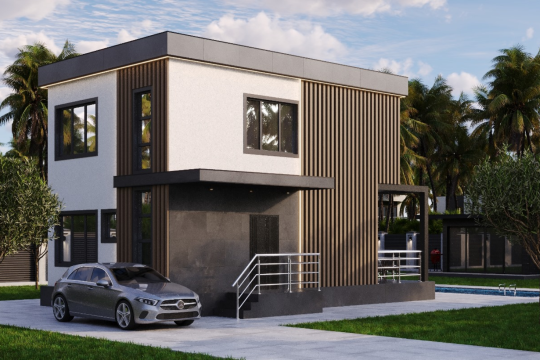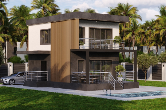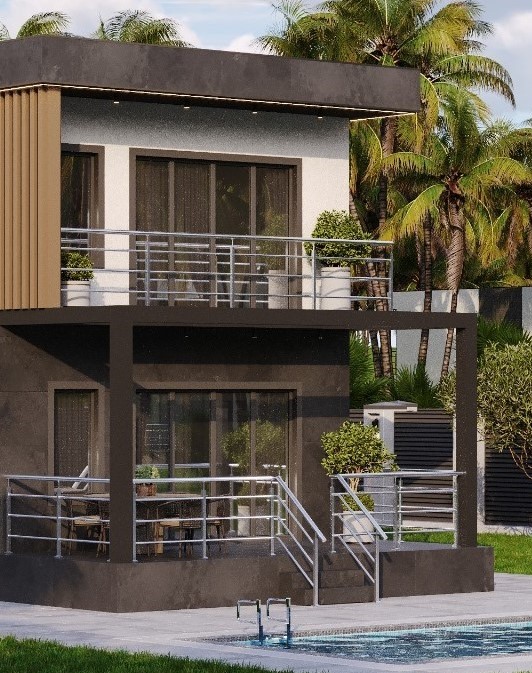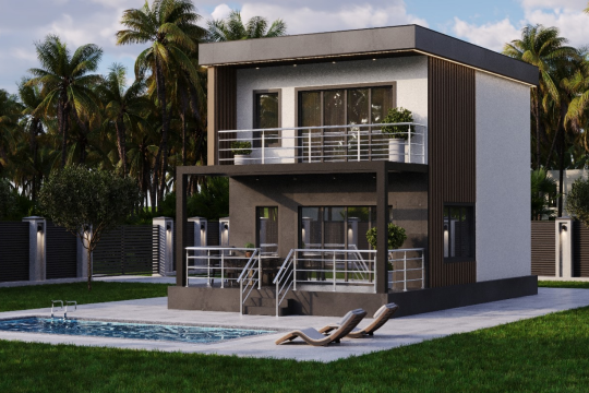- У дома очень функциональная планировка (просторная гостиная-столовая, 3 спальных комнаты, санузел с душевой на 1 этаже, просторная ванная комната на 2 этаже, балкон и терраса с ограждением из нержавеющей стали).